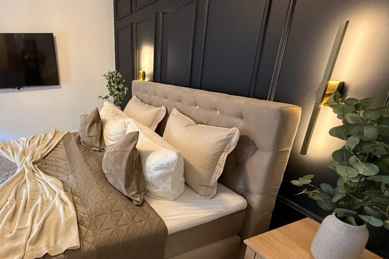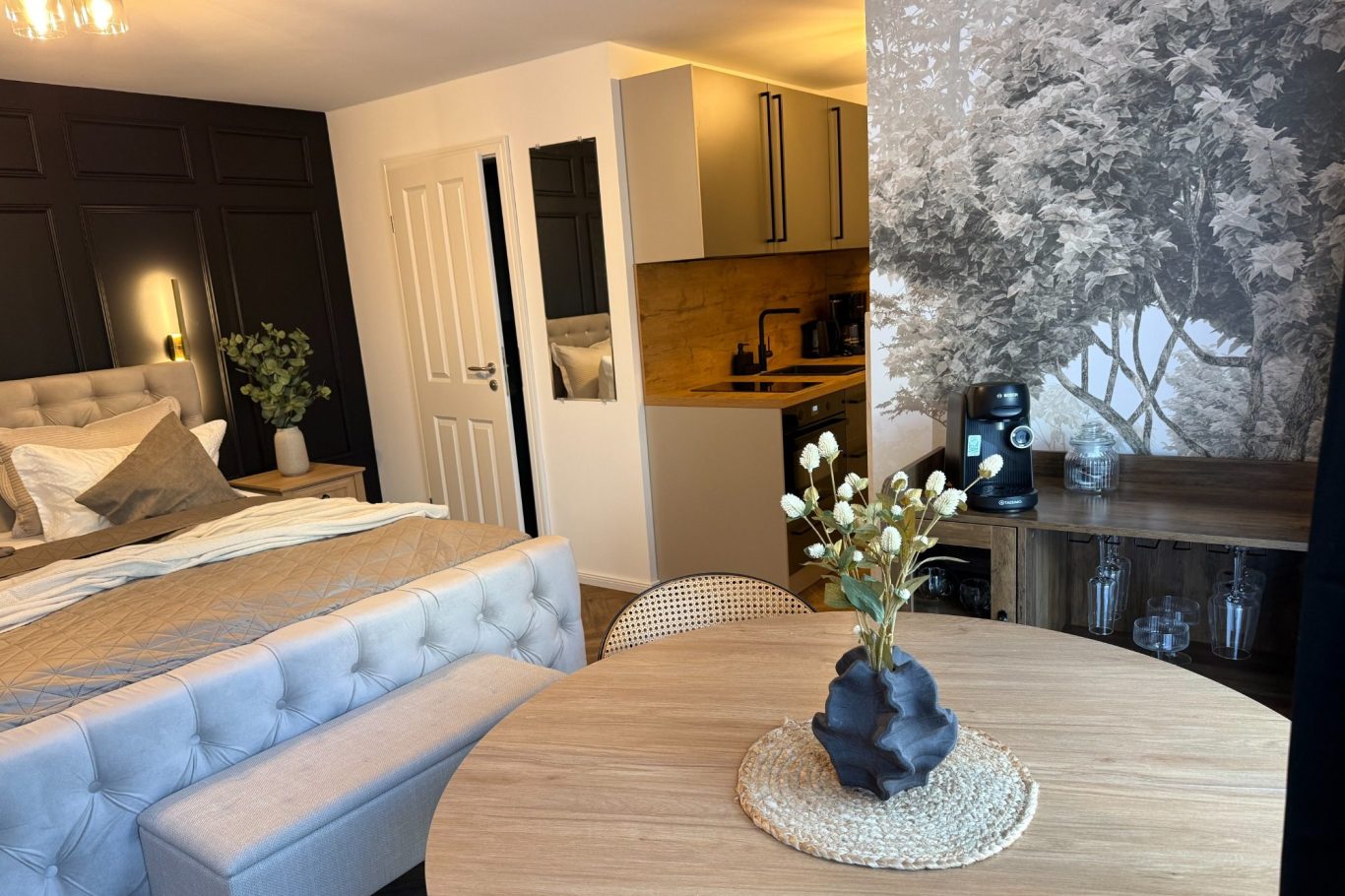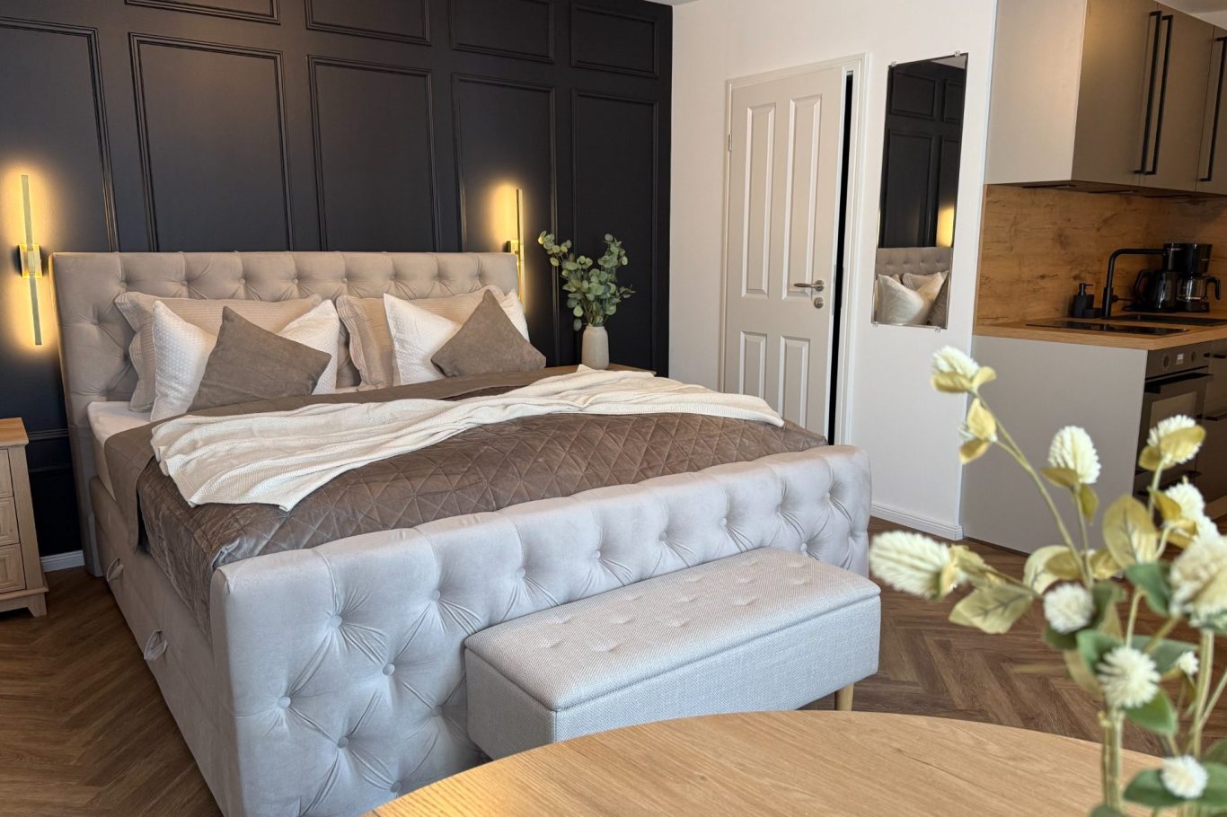 Seit Anfang März 2026 sind unsere Apartments sechs, sieben und acht im Hinterhaus frisch saniert. Hier warten jetzt große Doppelbetten, moderne Miniküchen mit Geschirrspüler und bodengleiche Duschen auf unsere Gäste.